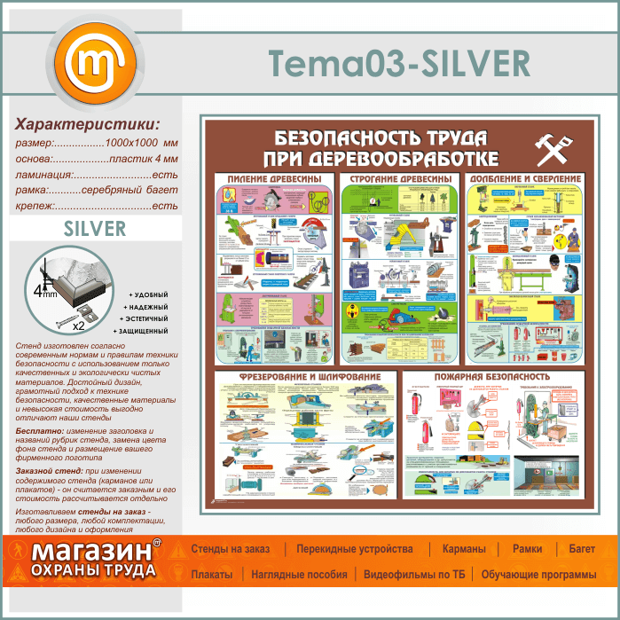 Стенд «Безопасность труда при деревообработке» (TM-03-SILVER) в Ульяновске купить