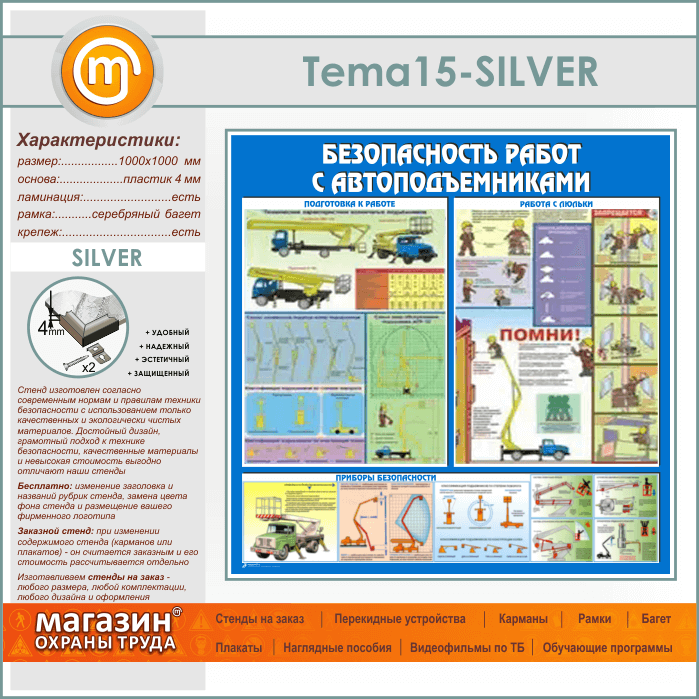 Стенд «Безопасность работ с автоподъемниками» (TM-15-SILVER) в Ульяновске купить