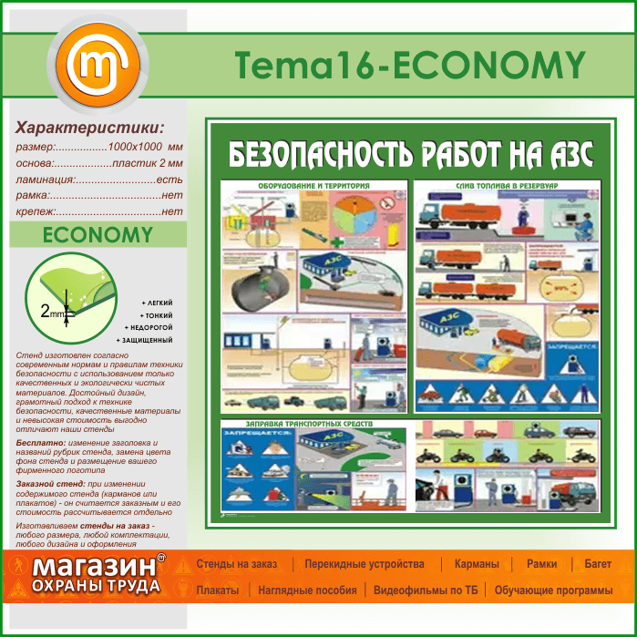 Стенд «Безопасность работ на автозаправочных станциях» (TM-16-ECONOMY) в Ульяновске купить