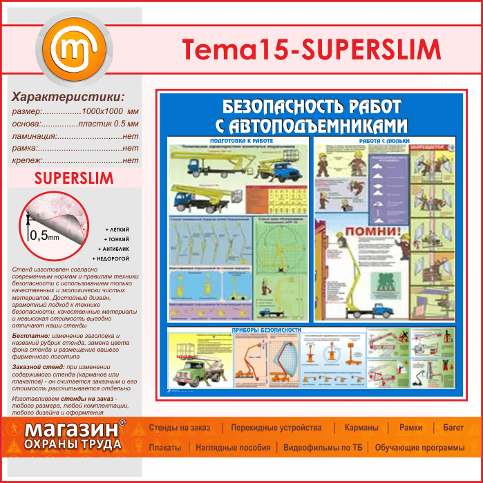Стенд «Безопасность работ с автоподъемниками» (TM-15-SUPERSLIM) в Ульяновске купить