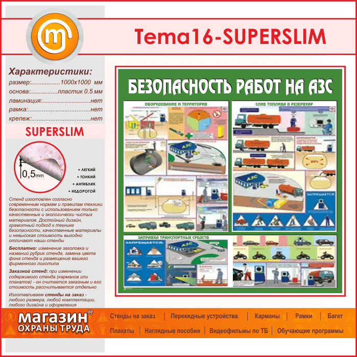 Стенд «Безопасность работ на автозаправочных станциях» (TM-16-SUPERSLIM) в Ульяновске купить