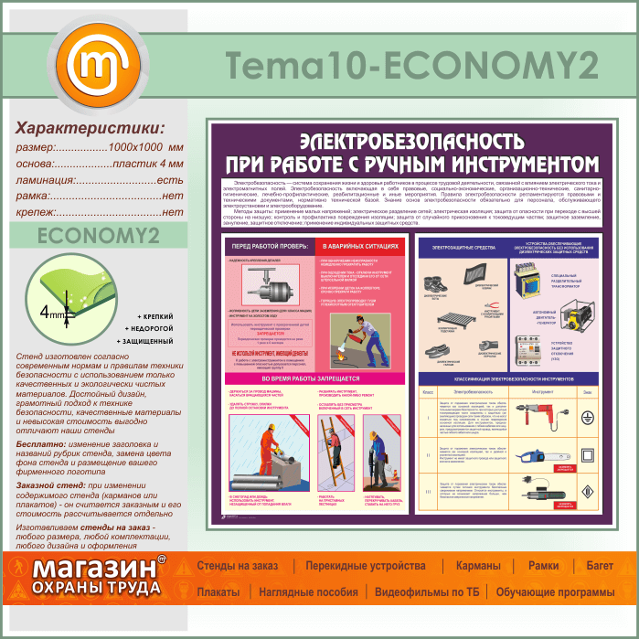 Стенд «Электробезопасность при работе с ручным инструментом» (TM-10-ECONOMY2) в Ульяновске купить