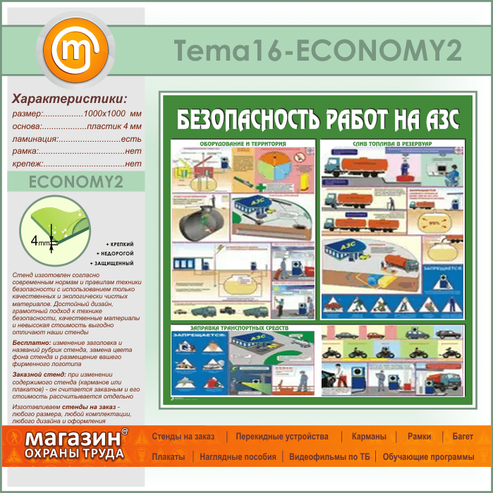Стенд «Безопасность работ на автозаправочных станциях» (TM-16-ECONOMY2) в Ульяновске купить