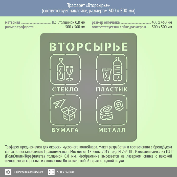 Трафарет «Вторсырье» (соответствует наклейке, размером 500х500 мм) в Ульяновске купить