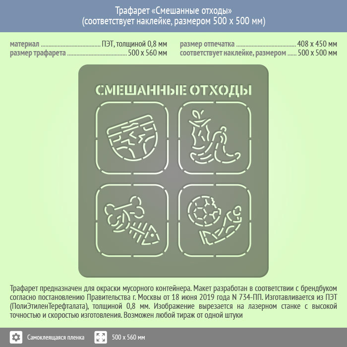 Трафарет «Смешанные отходы» (соответствует наклейке, размером 500х500 мм) в Ульяновске купить