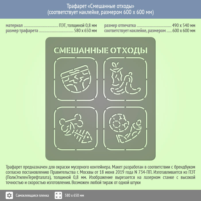 Трафарет «Смешанные отходы» (соответствует наклейке, размером 600х600 мм) в Ульяновске купить