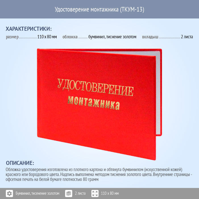 Бланк удостоверения монтажника (ТКУМ-13) в Ульяновске купить