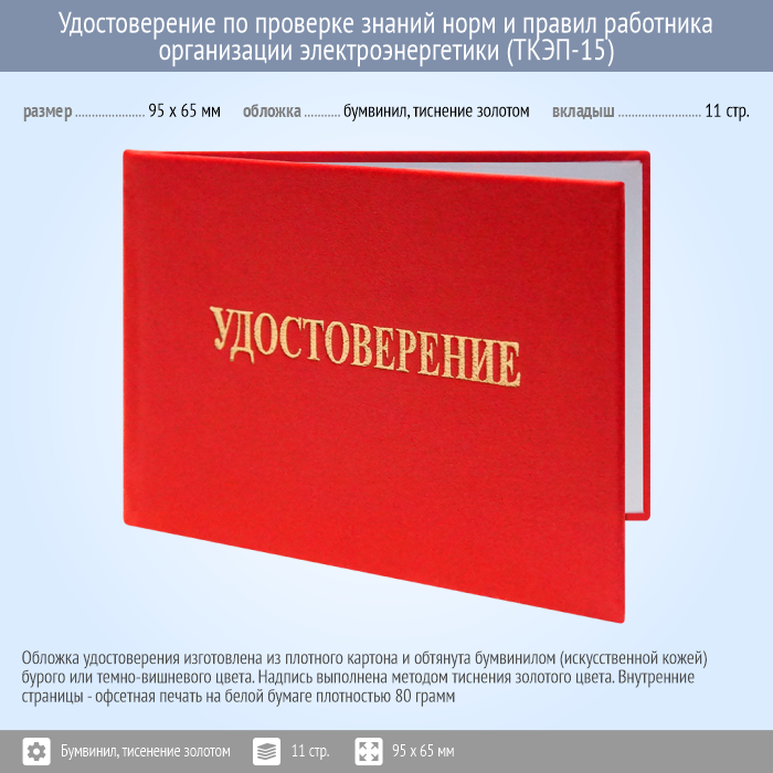 Бланк удостоверения по проверке знаний норм и правил работника организации электроэнергетики (ТКЭП-15) в Ульяновске купить