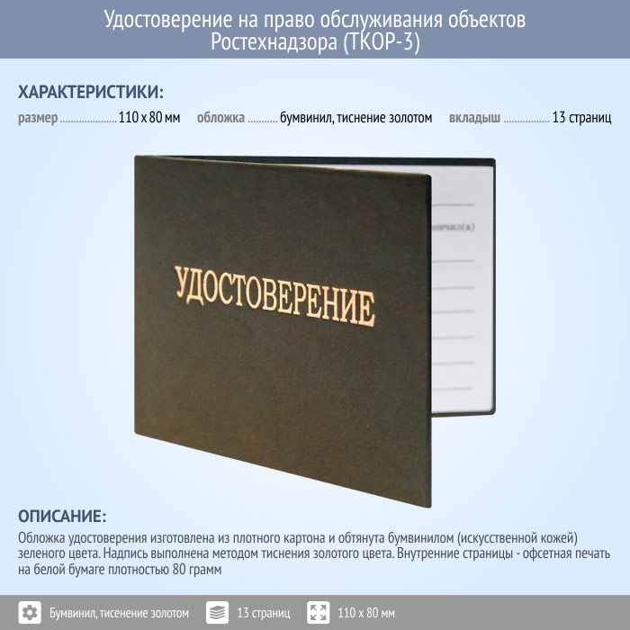 Бланк удостоверения на право обслуживания объектов Ростехнадзора (ТКОР-3) в Ульяновске купить