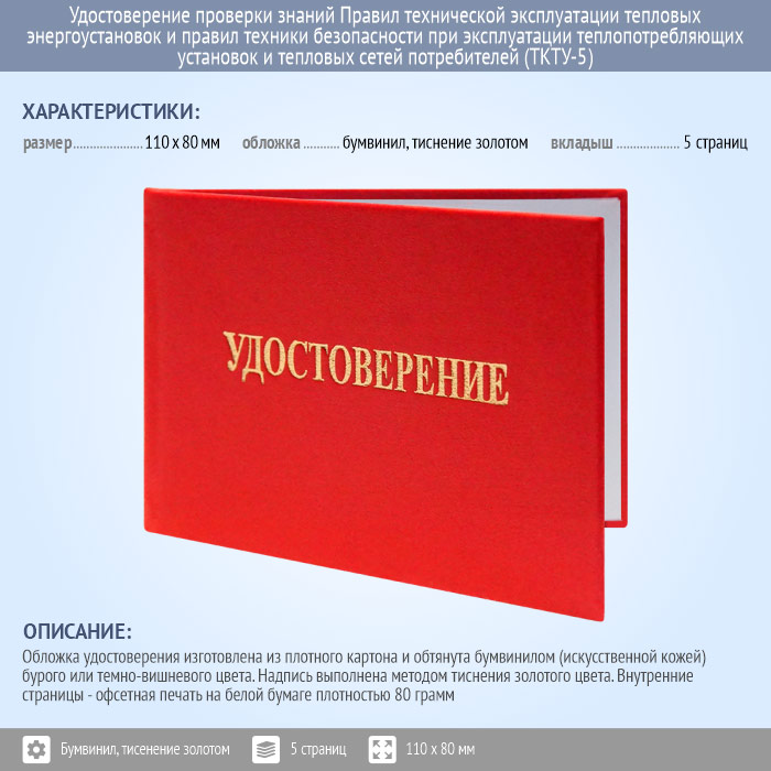 Бланк удостоверения проверки знаний Правил технической эксплуатации тепловых энергоустановок и правил техники безопасности при эксплуатации теплопотребляющих установок и тепловых сетей потребителей (ТКТУ-5) в Ульяновске купить