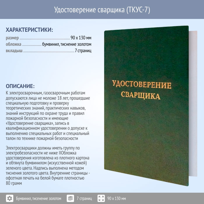Бланк удостоверения сварщика (ТКУС-7) в Ульяновске купить