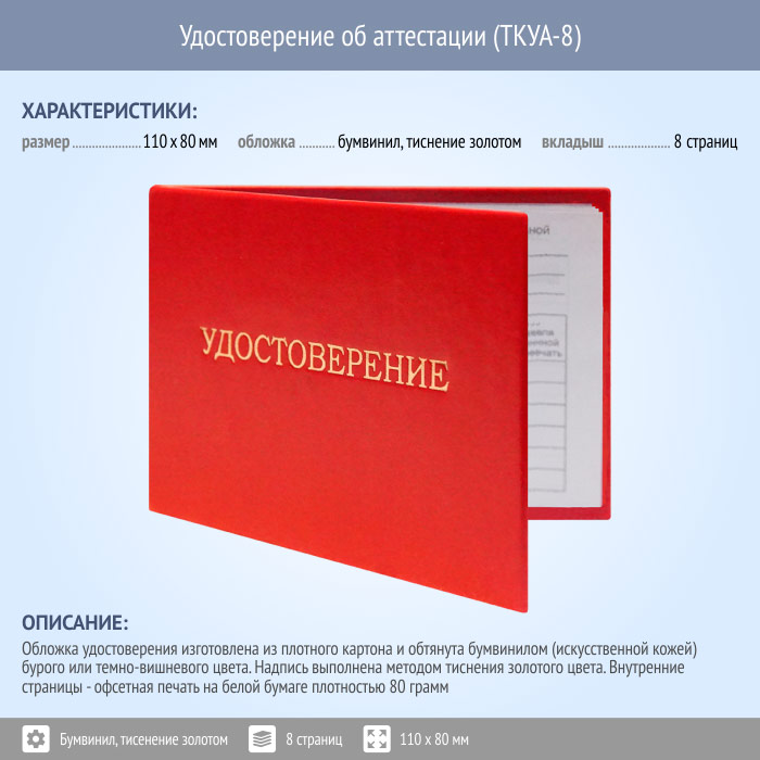 Бланк удостоверения об аттестации (ТКУА-8) в Ульяновске купить