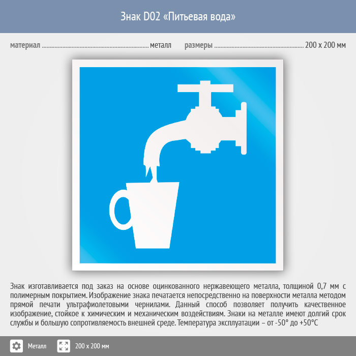 Знак D02 «Питьевая вода» (металл, 200х200 мм) в Ульяновске купить