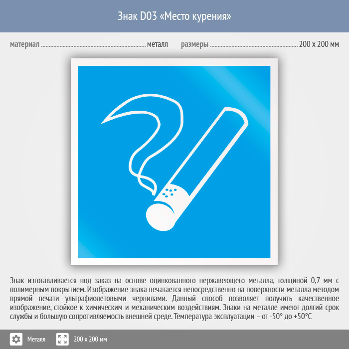 Знак D03 «Место курения» (металл, 200х200 мм) в Ульяновске купить