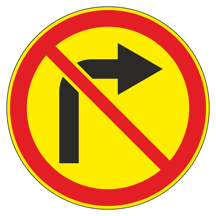 Дорожный знак 3.18.1 «Поворот направо запрещен» (временный) (металл 0,8 мм, II типоразмер: диаметр 700 мм, С/О пленка: тип А инженерная) в Ульяновске купить
