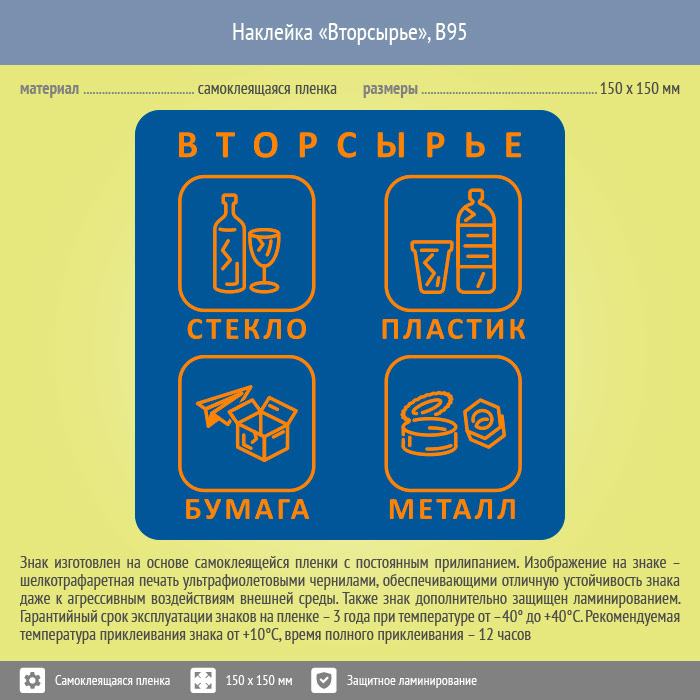 Наклейка на бак «Вторсырьё», B95 (пленка c ламинированием, 150х150 мм) в Ульяновске купить