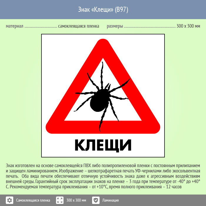 Знак «Клещи», B97 (пленка c ламинированием, 200х200 мм) в Ульяновске купить