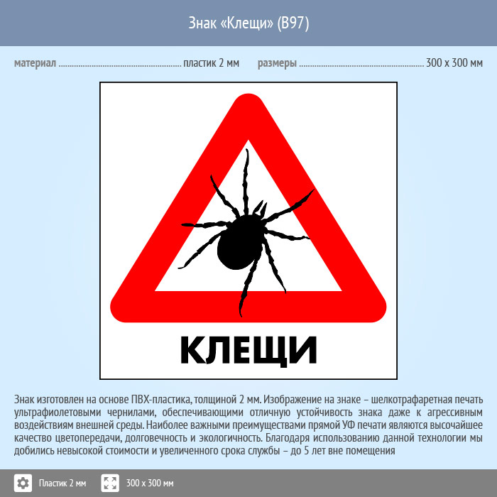 Знак «Клещи», B97 (пластик, 200х200 мм) в Ульяновске купить