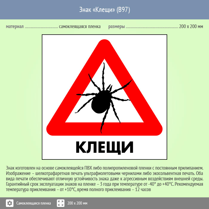 Знак «Клещи», B97 (пленка, 300х300 мм) в Ульяновске купить