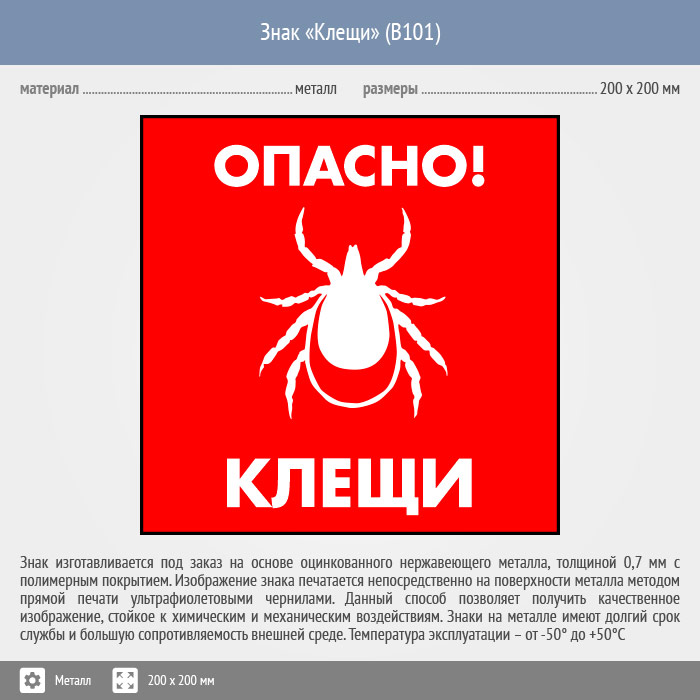 Знак «Опасно! Клещи», B101 (металл, 200х200 мм) в Ульяновске купить