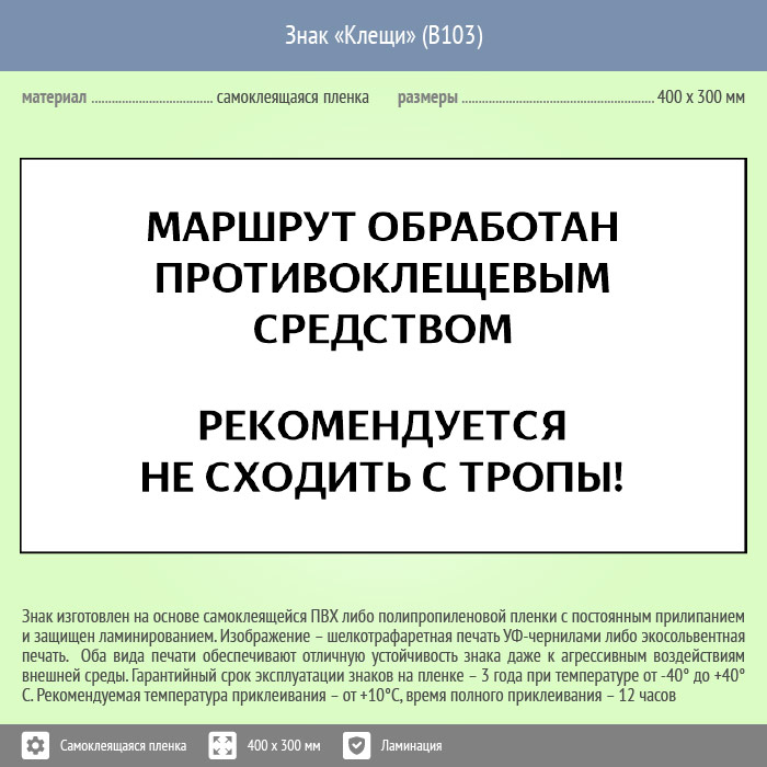 Знак «Клещи», B103 (пленка c ламинированием, 300х200 мм) в Ульяновске купить