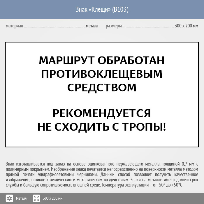 Знак «Клещи», B103 (металл, 400х300 мм) в Ульяновске купить