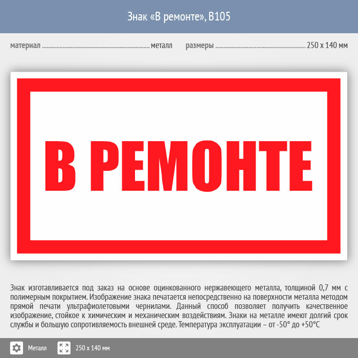 Знак «В ремонте», B105 (металл, 250х140 мм) в Ульяновске купить