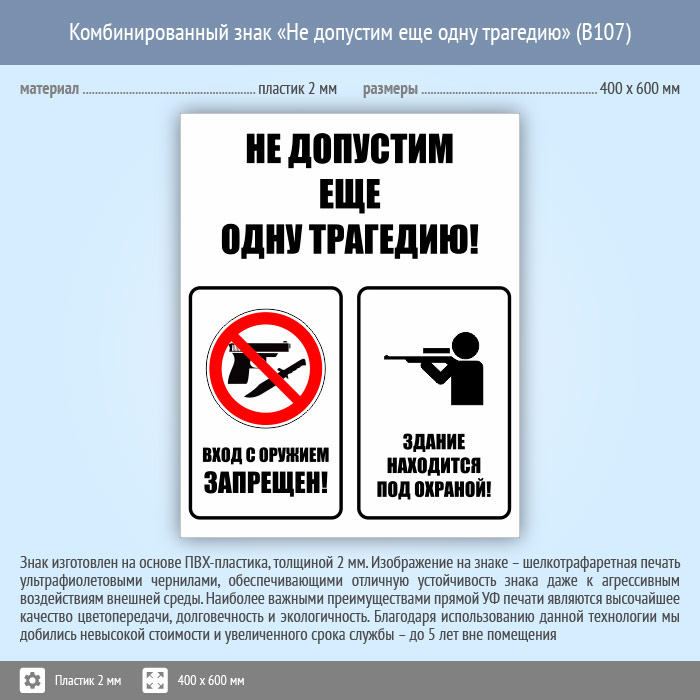 Комбинированный знак «Не допустим еще одну трагедию», B107 (пластик, 400х600 мм) в Ульяновске купить
