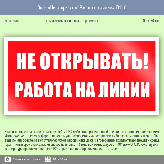Знак «Не открывать! Работа на линии», B116 (пленка, 100х50 мм) в Ульяновске купить