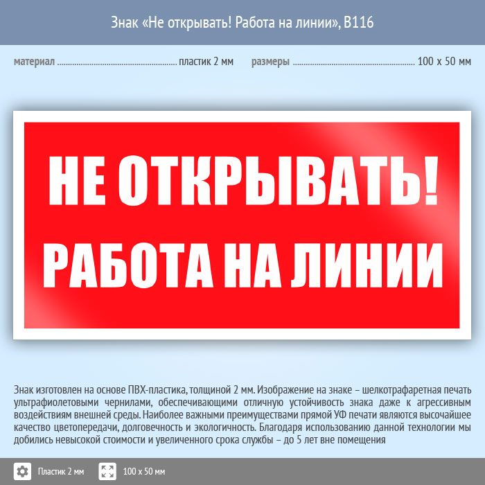 Знак «Не открывать! Работа на линии», B116 (пластик, 100х50 мм) в Ульяновске купить