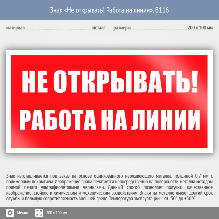 Знак «Не открывать! Работа на линии», B116 (металл, 200х100 мм) в Ульяновске купить