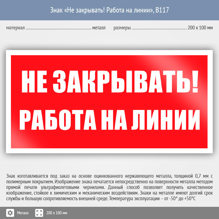 Знак «Не закрывать! Работа на линии», B117 (металл, 200х100 мм) в Ульяновске купить