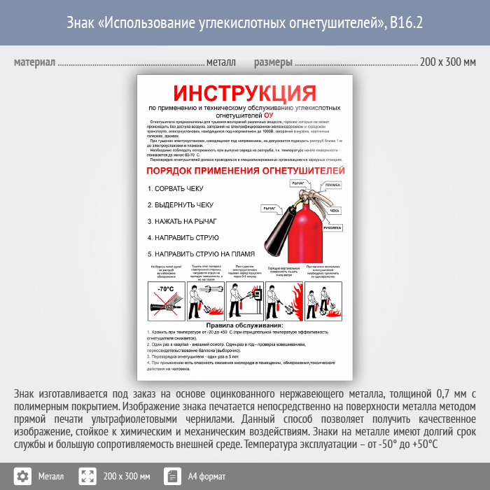 Знак «Использование углекислотных огнетушителей», B16.2 (металл, 200х300 мм) в Ульяновске купить