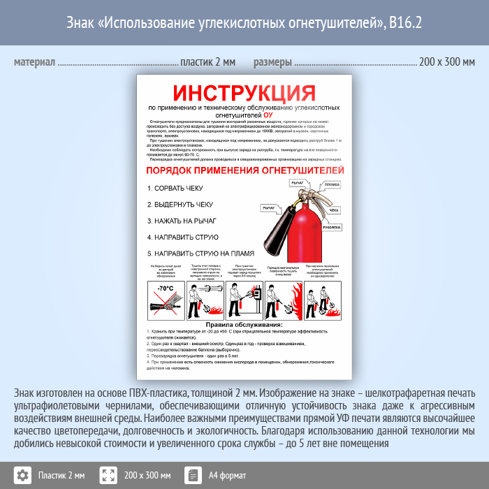Знак «Использование углекислотных огнетушителей», B16.2 (пластик, 200х300 мм) в Ульяновске купить