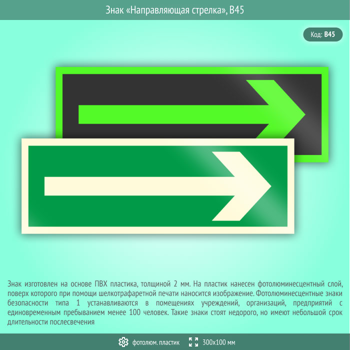 Знак «Направляющая стрелка», B45 (фотолюминесцентный пластик, 300х100 мм) в Ульяновске купить