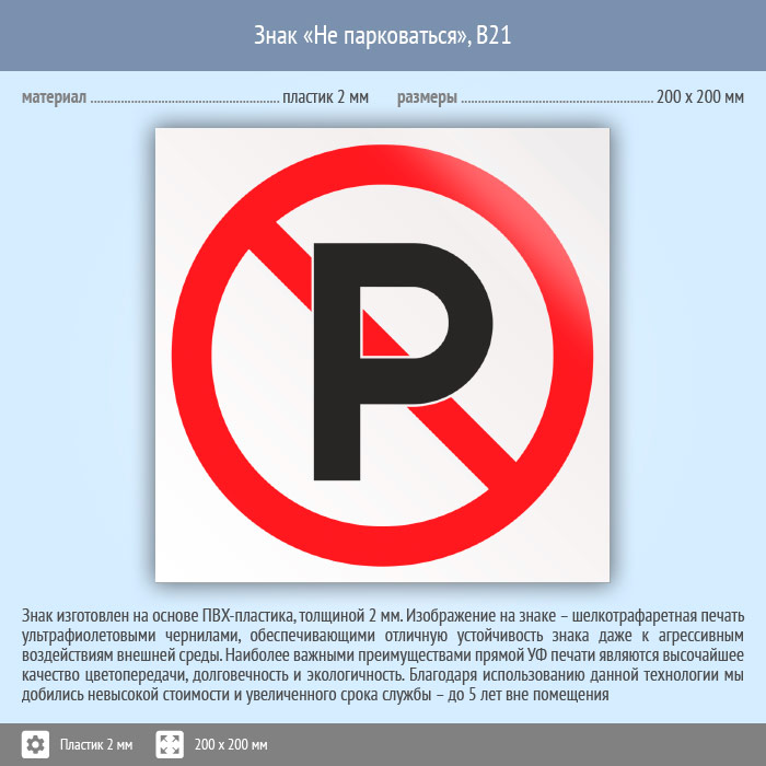 Знак «Не парковаться», B21 (пластик, 200х200 мм) в Ульяновске купить