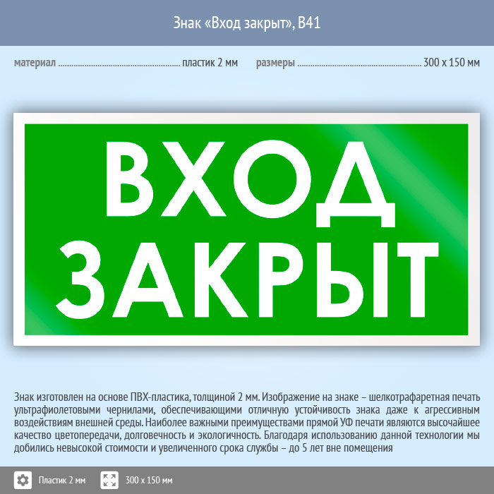Знак «Вход закрыт», B41 (пластик, 300х150 мм) в Ульяновске купить
