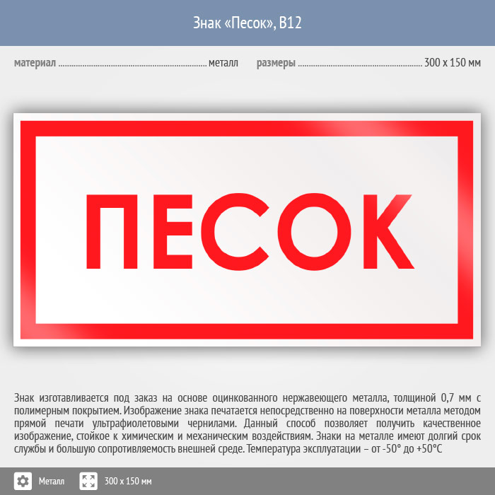 Знак «Песок», B12 (металл, 300х150 мм) в Ульяновске купить
