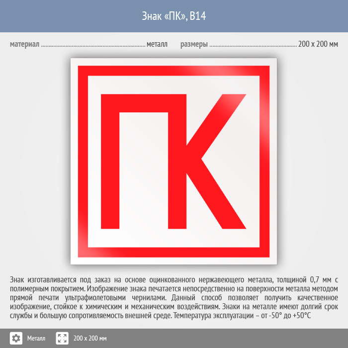 Знак «ПК», B14 (металл, 200х200 мм) в Ульяновске купить