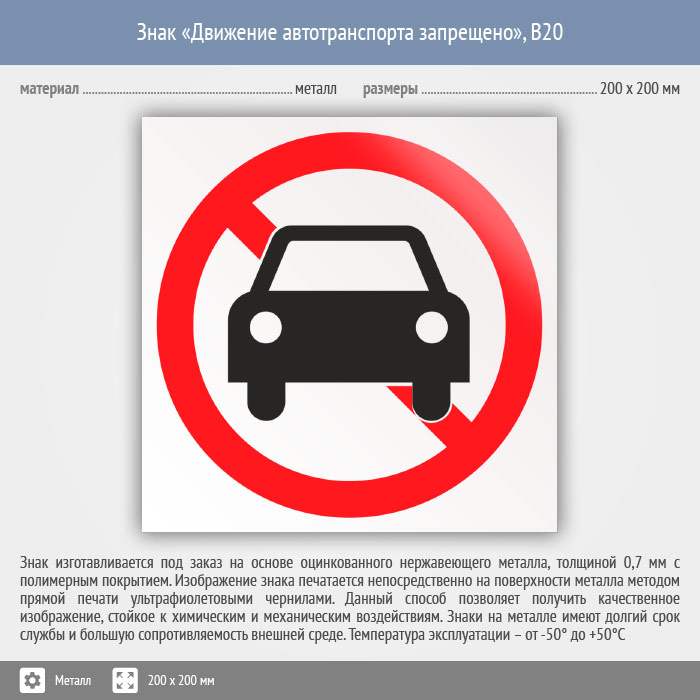 Знак «Движение автотранспорта запрещено», B20 (металл, 200х200 мм) в Ульяновске купить