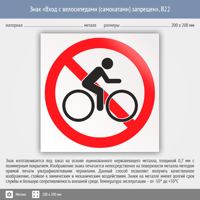 Знак «Вход с велосипедами (самокатами) запрещен», B22 (металл, 200х200 мм) в Ульяновске купить