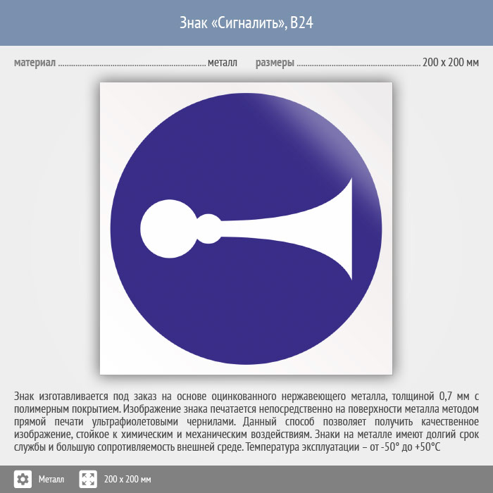 Знак «Сигналить», B24 (металл, 200х200 мм) в Ульяновске купить
