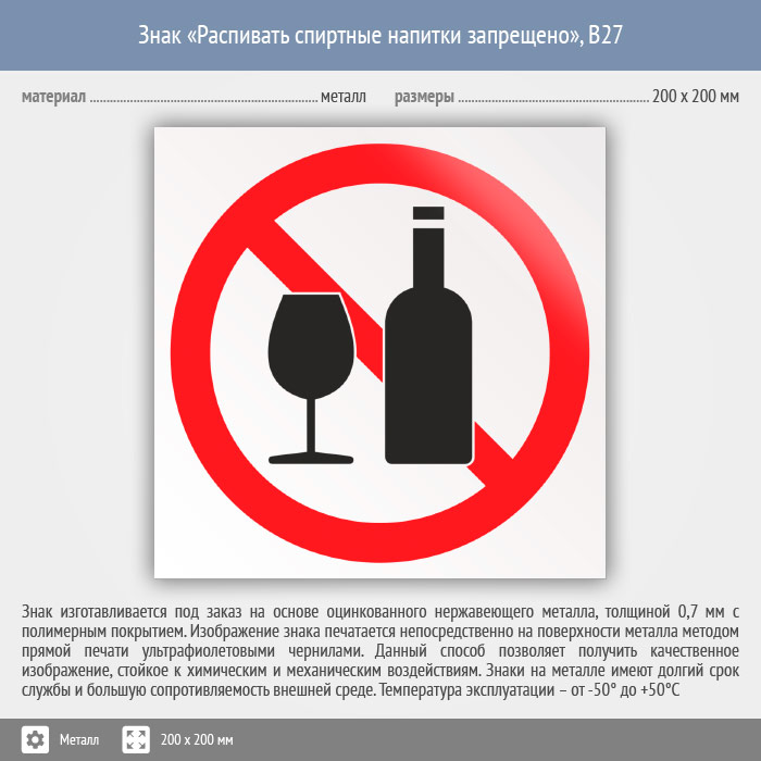 Знак «Распивать спиртные напитки запрещено», B27 (металл, 200х200 мм) в Ульяновске купить