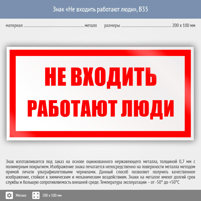 Знак «Не входить работают люди», B35 (металл, 200х100 мм) в Ульяновске купить
