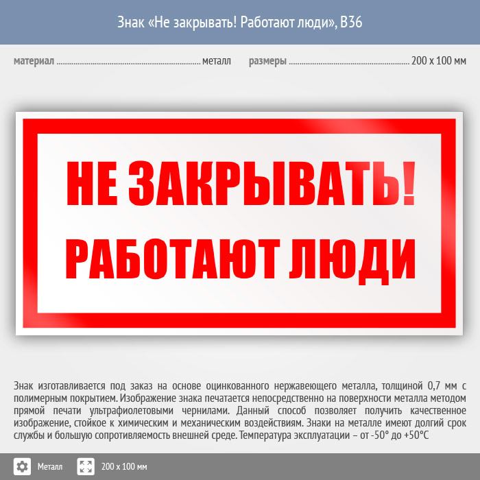 Знак «Не закрывать! Работают люди», B36 (металл, 200х100 мм) в Ульяновске купить