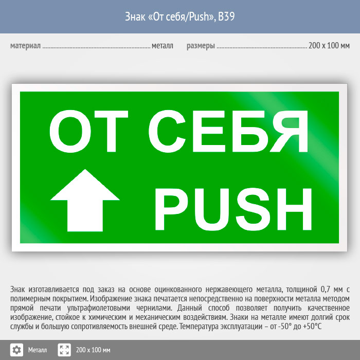 Знак «От себя/Push», B39 (металл, 200х100 мм) в Ульяновске купить