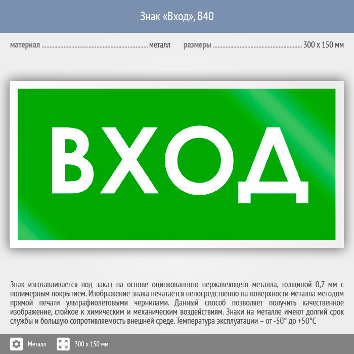 Знак «Вход», B40 (металл, 300х150 мм) в Ульяновске купить