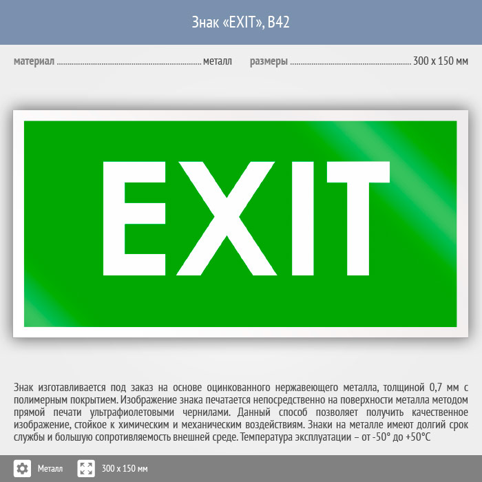 Знак «EXIT», B42 (металл, 300х150 мм) в Ульяновске купить