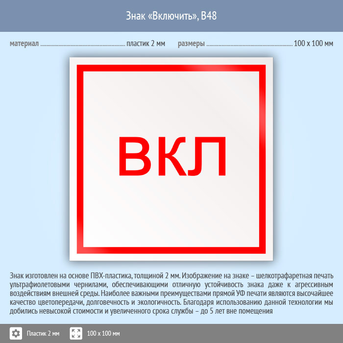 Знак «Включить», B48 (пластик, 100х100 мм) в Ульяновске купить