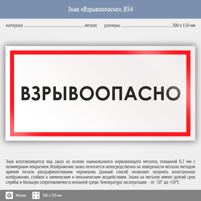 Знак «Взрывоопасно», B54 (металл, 300х150 мм) в Ульяновске купить